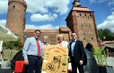 Der Bad Freienwalder Bürgermeister Rald Lehmann hat den Staffelstab an den Bürgermeister des diesjährigen Ausrichters Bernau bei Berlin, André Stahl, übergeben.